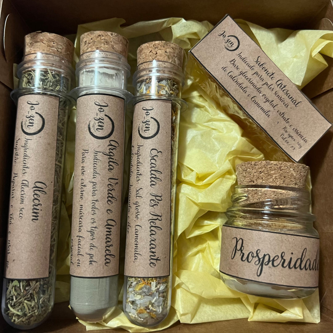 01 Mini sabonete vegetal glicerinado: Para um banho relaxante e repleto de energia das plantas: Calêndula: Fortalece o interior, atrai o amor e afasta todo tipo de negatividade. Já a Camomila chama a prosperidade e gera otimismo.